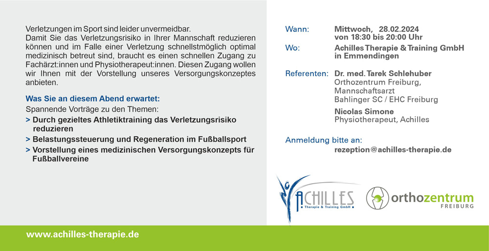 Kostenlose Anmeldung bitte per E-Mail an: rezeption@achilles-therapie.de