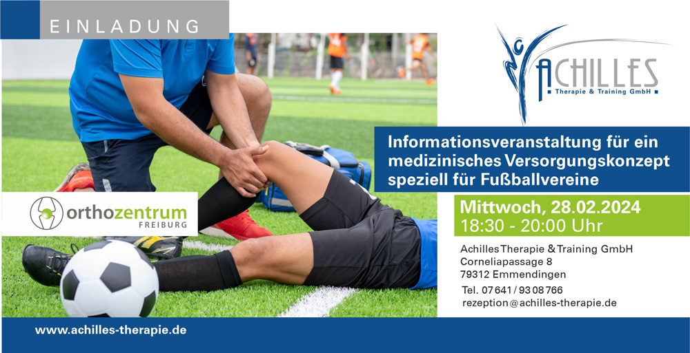 Am Mittwoch, den 28.02.2024 findet in unserer Praxis von 18:30-20:00 Uhr eine Informationsveranstaltung für ein medizinisches Versorgungskonzept speziell für Fußballvereine statt.